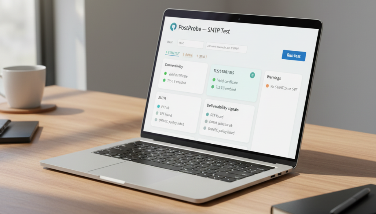 PostProbe — Free Online SMTP Test (Connection, TLS/STARTTLS, Auth, Blacklists, Deliverability)